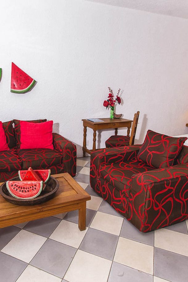 El ambiente de Casa Natalia se basa en el color y la magia de México. Nuestra colección de habitaciones de lujo goza de una amplia sala de estar, baño de mármol de concepto abierto con gran ducha y terraza privada a la sombra con vistas al patio de Casa Natalia. Cada habitación es única y atrae al viajero que busca encanto y lujo. Si bien, te alojas en un hotel del centro de San José del Cabo, tu habitación de hotel es un santuario bellamente decorado. Las habitaciones de lujo de Casa Natalia no incluyen desayuno diario gratuito.