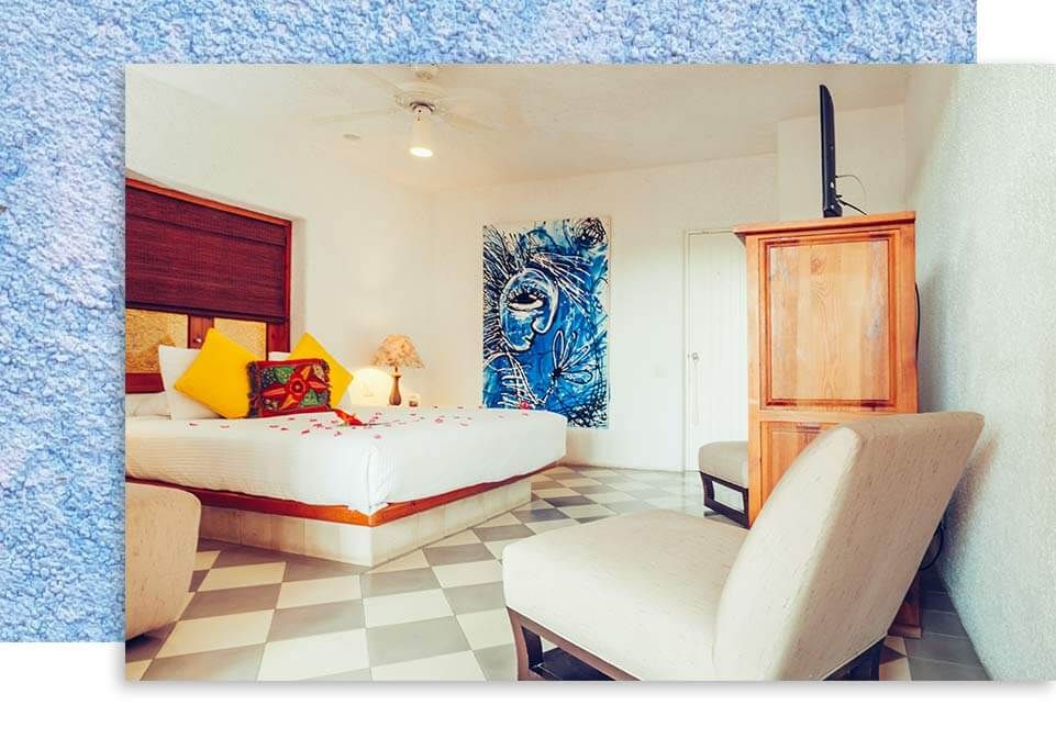 Enjoy Casa Natalia’s Superior suite with the added comfort and convenience of daily breakfast. Superior rooms are double occupancy, and feature queen beds, seating area with television, large ensuite with walk in shower, and private outdoor terrace and hammock.